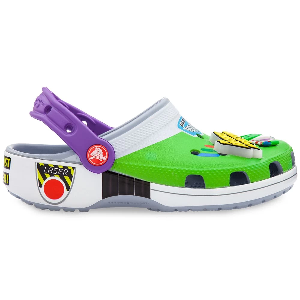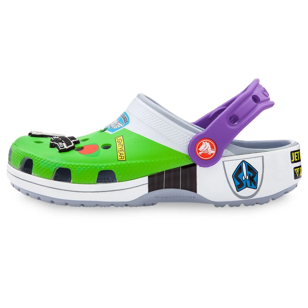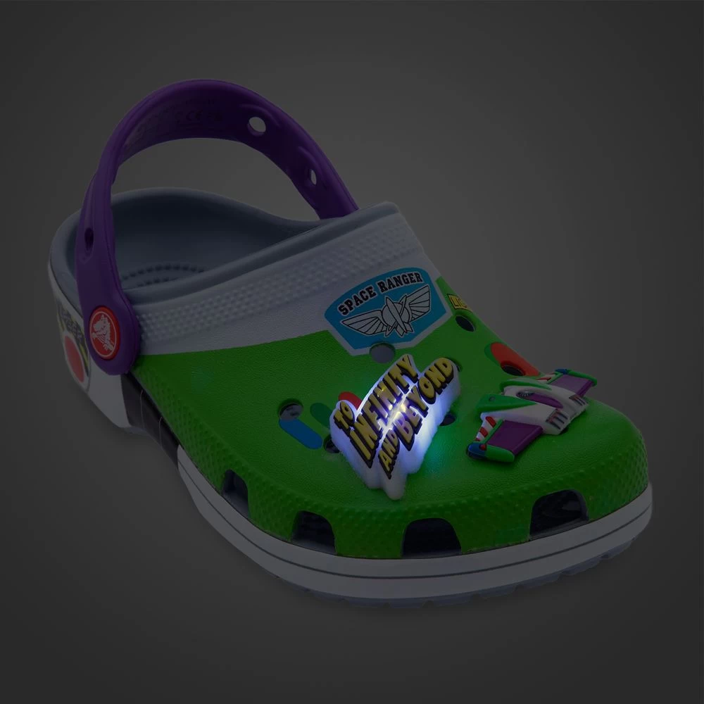 - Includes four vinyl Jibbitz charms: ”To infinity and beyond,” Space Ranger wings, ”Buzz Lightyear Space Ranger” badge, and Buzz Lightyear Space Ranger spaceship