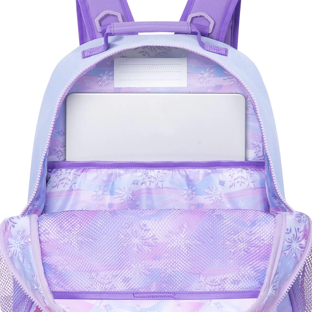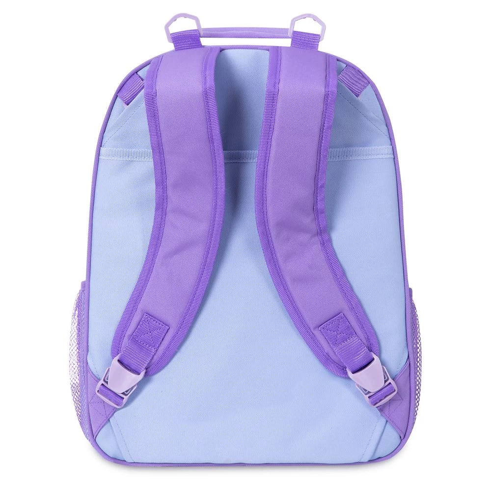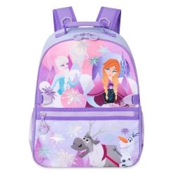 A flurry of embroidered snowflakes settle on our Frozen backpack featuring Arendelle’s regal sisters Elsa and Anna, plus their friends Sven and Olaf. This colorful carryall has such adaptive features as zipper pulls and detachable straps. Pair it with the coordinating Frozen lunch box, water bottle and zip-up stationery kit for added classroom convenience.