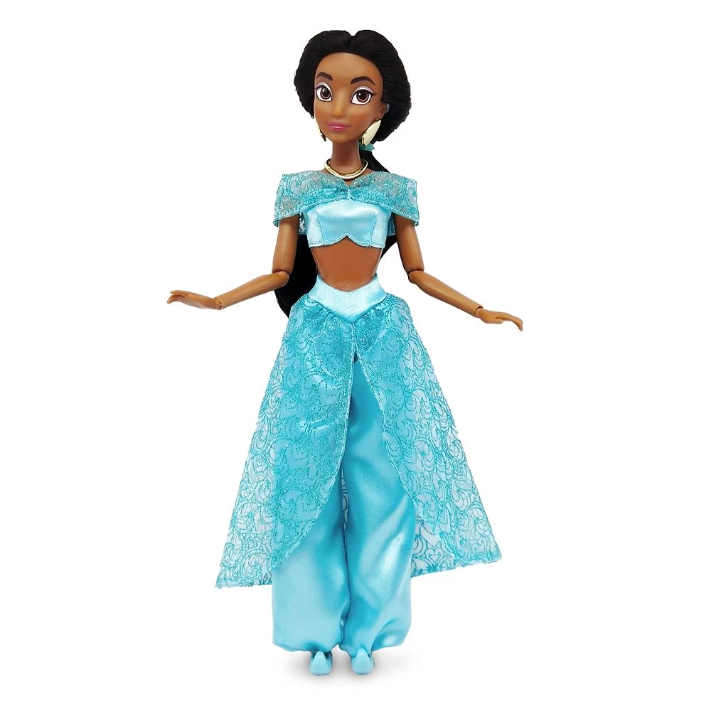 With her long black hair, sparkling royal raiment, and regal jewelry, our Jasmine Classic Doll soars to a whole new world of imagination. Includes a hairbrush for doll. Comes in plastic free packaging.