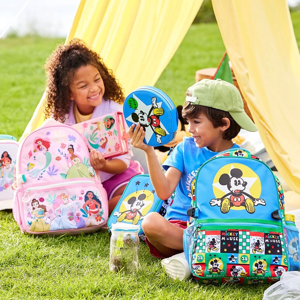 Hey there! Hi there! Ho there! A pie-eyed Mickey is pictured on the front of this zip-up stationery kit. Outline sketch art of Mickey adorns the soft padded cover, which opens to reveal everything budding artists need to fill their days with creativity, including twist crayons, sticky notes, notebook and more.
