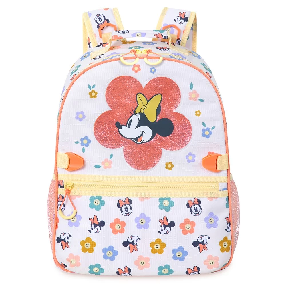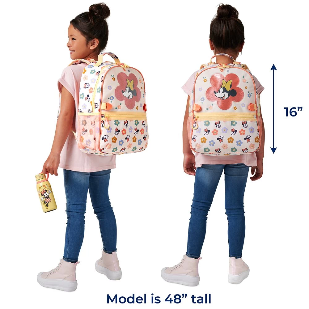Going back to school is more fun in the company of Minnie Mouse. With an allover print starring a smiling Minnie and pretty flowers, this smart and stylish carryall has adaptive features including zipper pulls and detachable straps. Pair it with the coordinating Minnie Mouse lunch box, water bottle and zip-up stationery kit for a completely chic and cheerful ensemble.Â