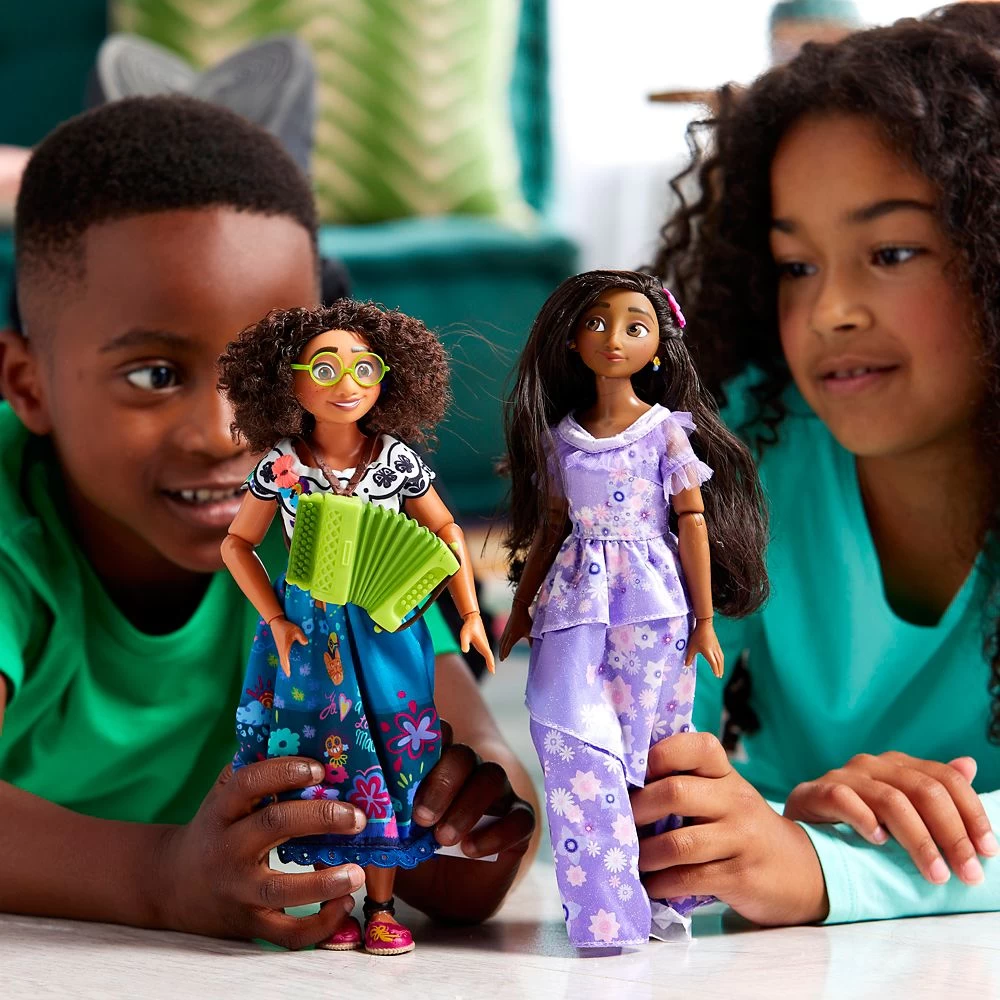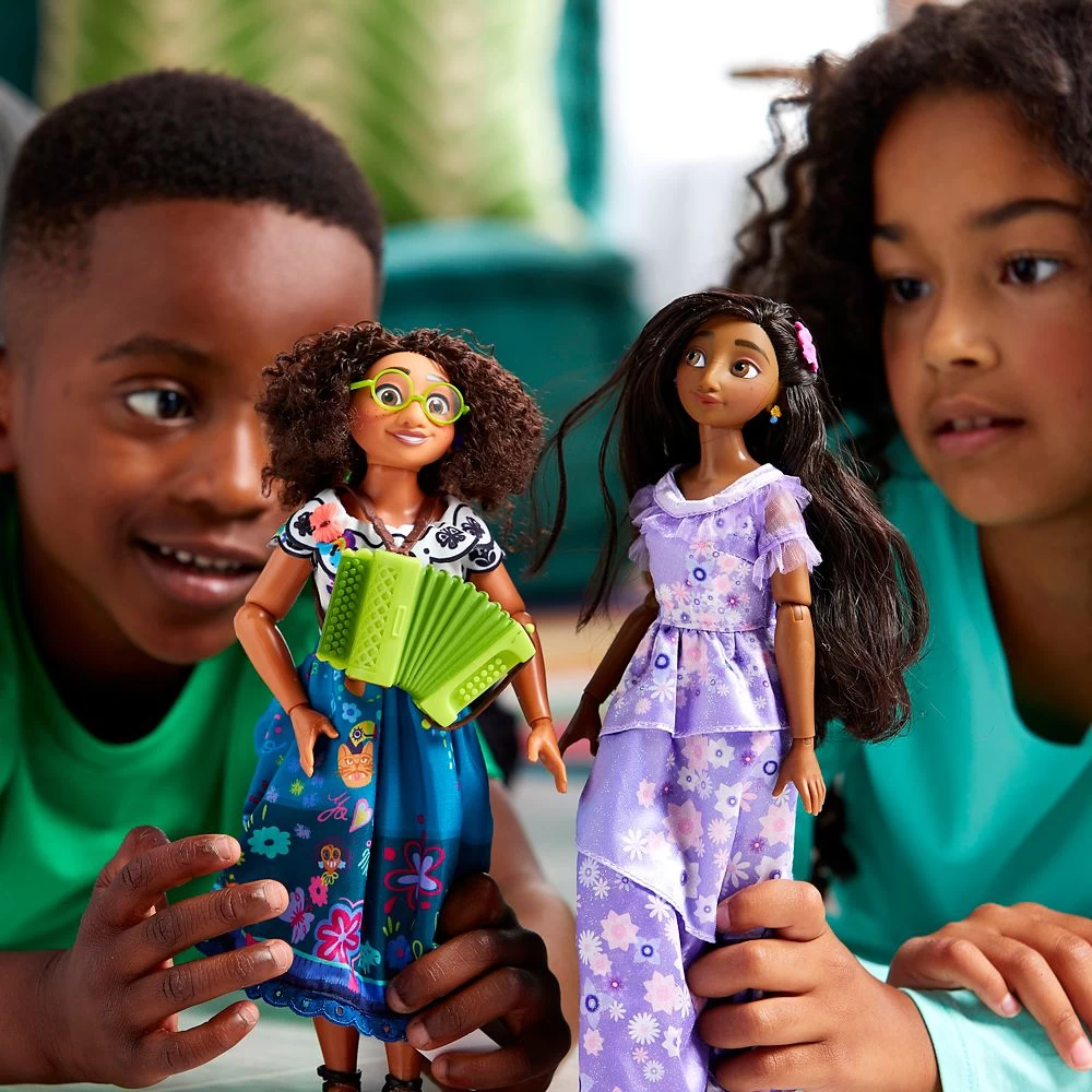 The lovable, funny young Mirabel is part of the Madrigal family at the heart of Disney’s Encanto. This detailed doll includes her movie-inspired outfit and accordion. Press the button to hear her sing The Family Madrigal, one of Lin-Manuel Miranda’s songs from the film.