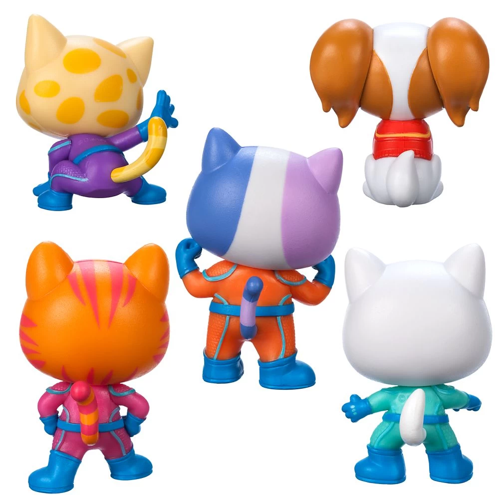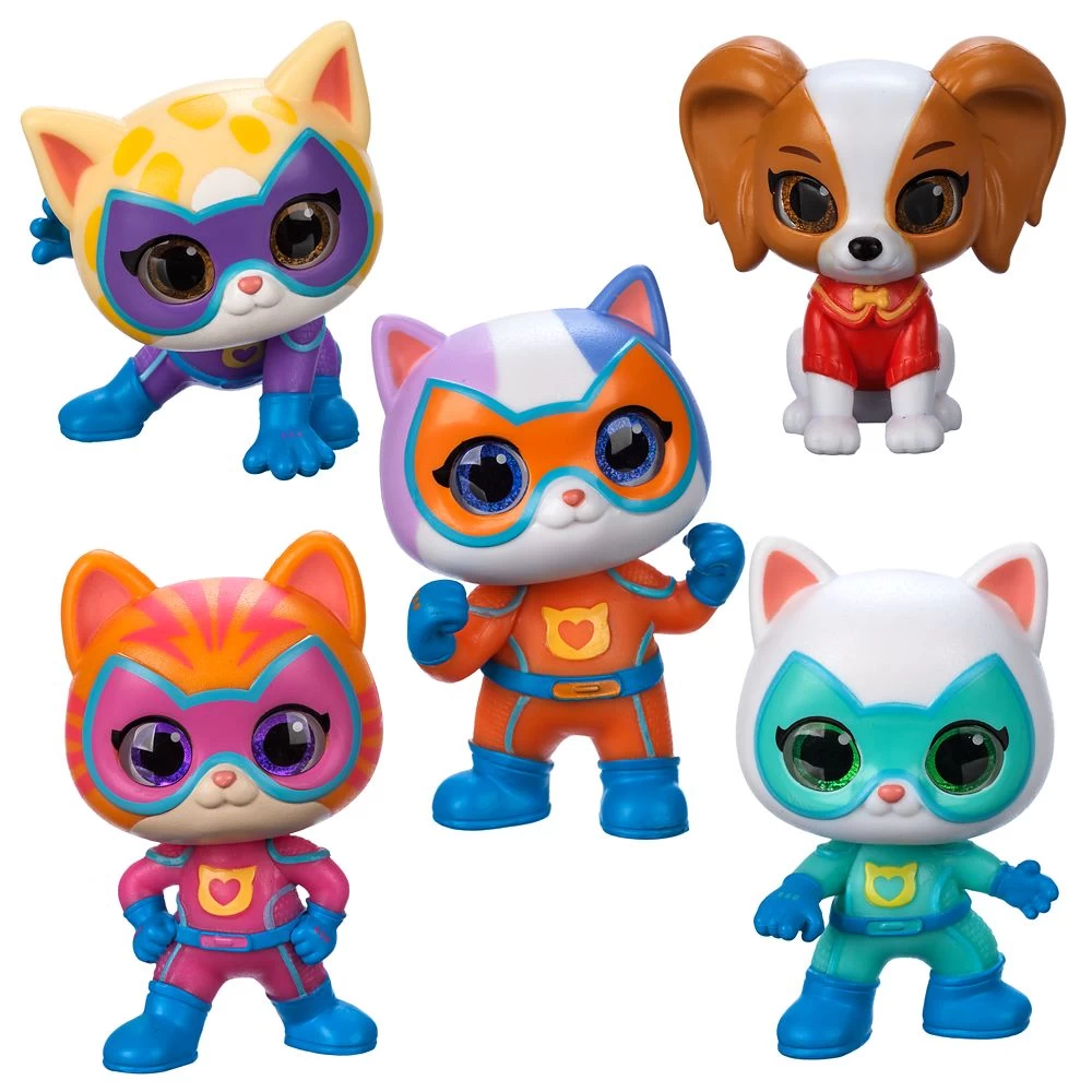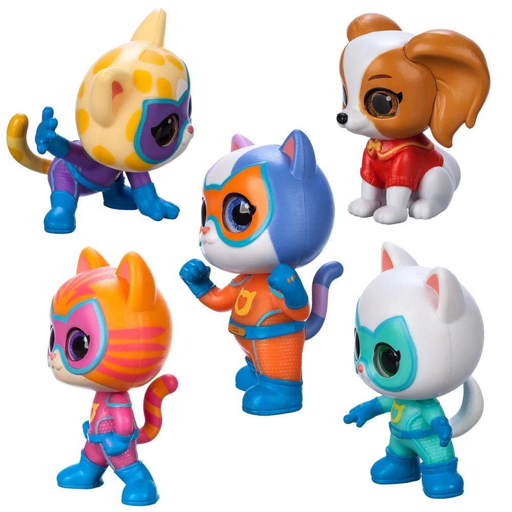 Five of the dynamic characters from the Disney Junior series SuperKitties have teamed up in this Hero Squad Figure Set. Ginny, Bitsy, Buddy, Sparks and the villainous Mr. Puppypaws are featured in heroic detail so young ones can create their own adventures from Kittydale.