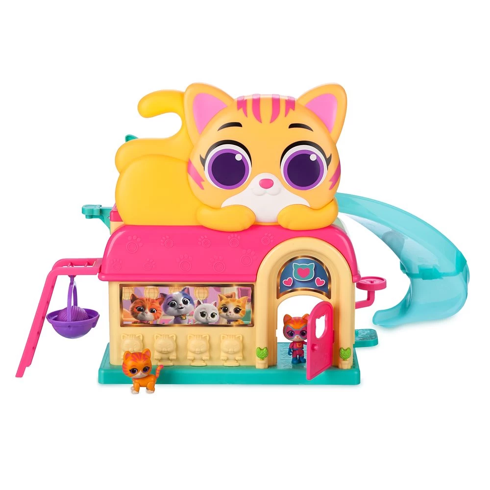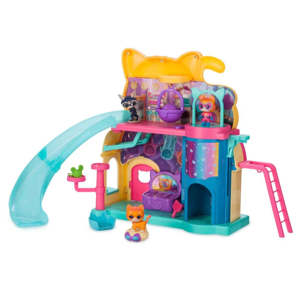 - Purr ‘N’ Play with slide, articulated Hero and Kitty Ginny figures, Cat Burglar figure, SuperKitty Kit, Mr. Greenie, Mission Control monitor, hanging seat, ladder, bed, brush and yarn ball