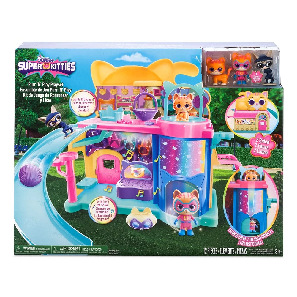 Your little ones can bring the pawfectly delightful world of the SuperKitties to life with this Purr ‘N’ Play playset that replicates the central location from the Disney Junior series. The double-sided playground includes light and sound effects, a song from the show, three kitty figures plus lots of fun features including an elevator that transforms Ginny into her SuperKitty character.