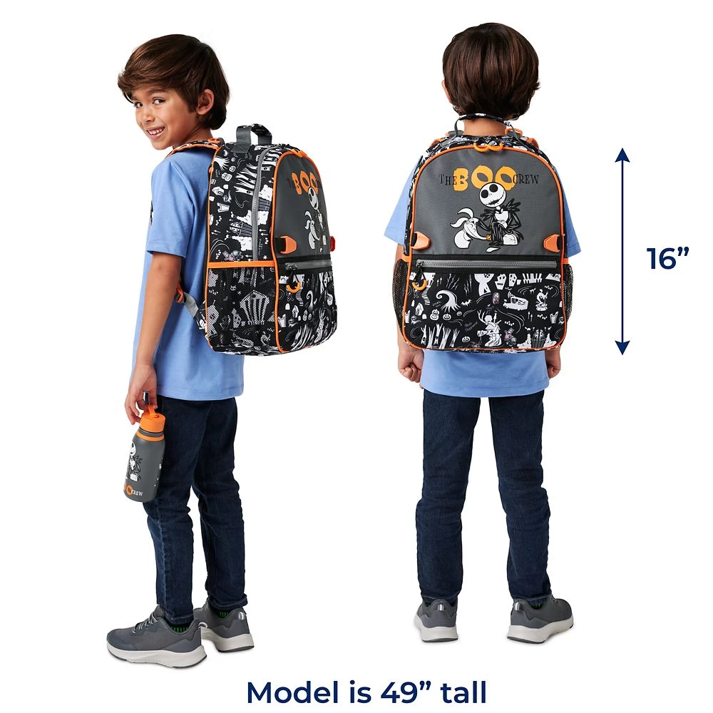 Going to school with ”The Boo Crew” will be frightfully fun when they’re carrying their classroom essentials in this backpack. Jack Skellington and his ghostly canine companion Zero are featured on this colorful carryall that has such adaptive features as zipper pulls and detachable straps. Pair it with the coordinating The Nightmare Before Christmas lunch box for added back-to-ghoul convenience.