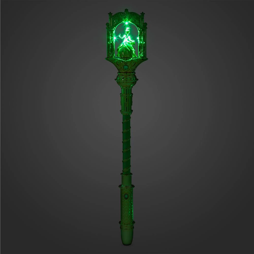 A wave of Tiana’s wand commands a kingdom of enchantment. Topped by the princess’ sculpted figure, this golden scepter lights up when you press a gem on the stem for a dreamy The Princess and the Frog costume accessory.