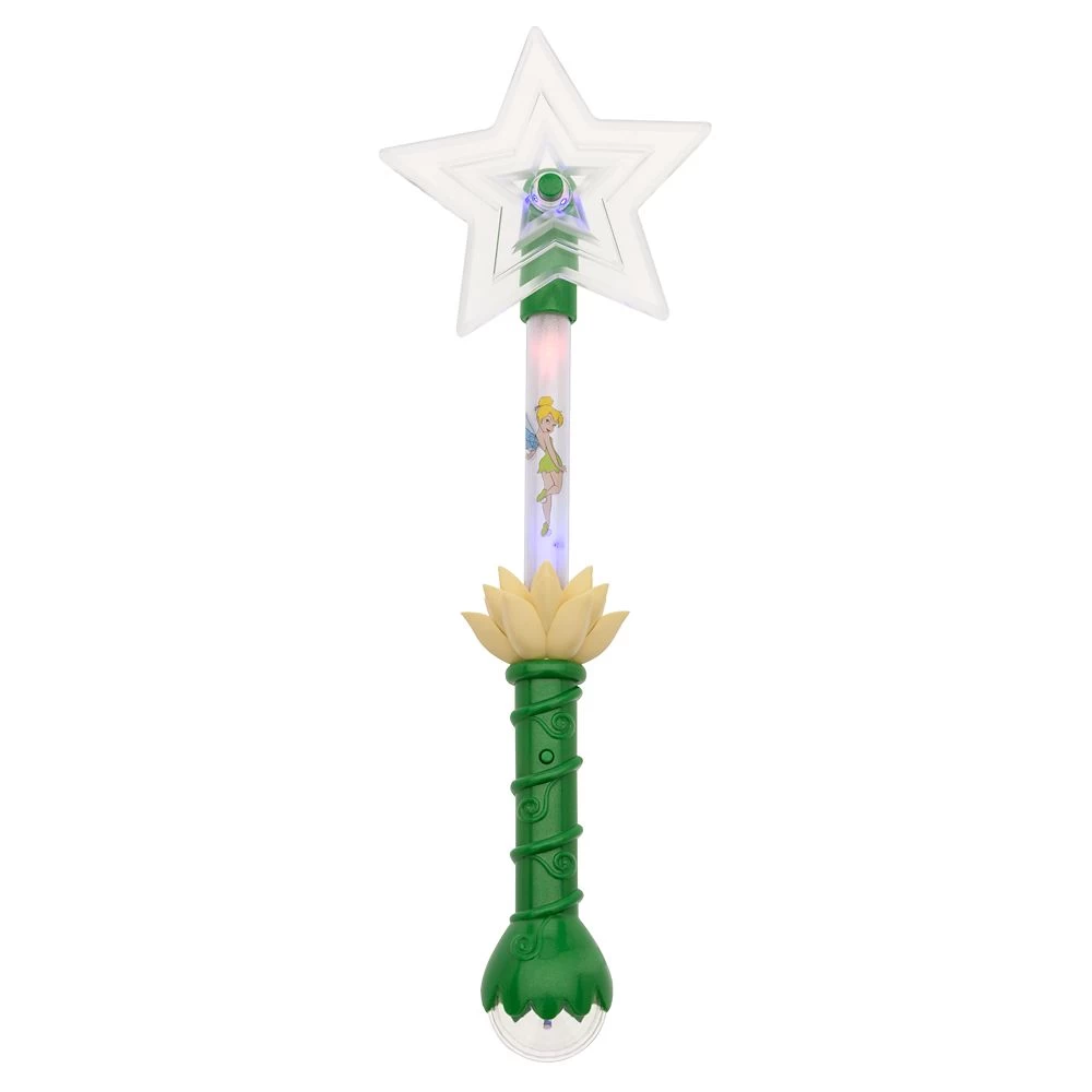 Create a little night magic with this Tinker Bell glow spinner and watch the translucent star spin and the colored lights dance and glow in the dark. Tink screen art on the shaft creates a pretty shadow against the lights in the dark and delights in the light of day. Other special features include sculpted details like a lovely flower and a translucent faceted orb at the base. Like holding pixie power in their hands, your kiddo will love taking a little magic out for a spin.